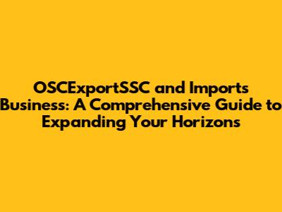 OSCExportSSC & Imports: Your Business Expansion Guide