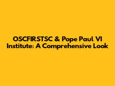 OSCFIRSTSC & Pope Paul VI Institute: A Comprehensive Look
