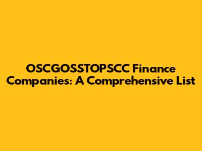 OSCGOSSTOPSCC Finance Companies: A Comprehensive List
