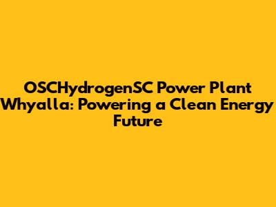 OSCHydrogenSC Power Plant In Whyalla: A Clean Energy Future