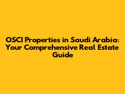 OSCI Properties: Saudi Arabia Real Estate Guide