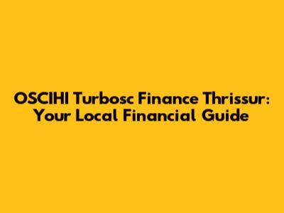OSCIHI Turbosc Finance Thrissur: Your Local Financial Guide