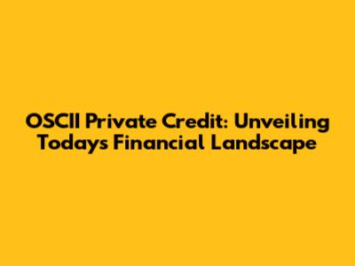 Deep Dive into OSCII Private Credit: What You Need to Know