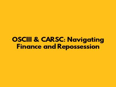 OSCIII & CARSC: Navigating Finance And Repossession