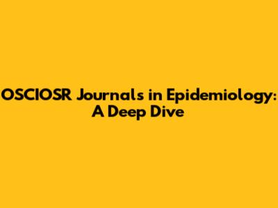 OSCIOSR Journals In Epidemiology: A Deep Dive