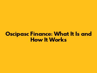 Oscipasc Finance: What It Is And How It Works