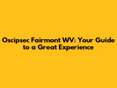Oscipsec Fairmont WV: Your Guide To A Great Experience
