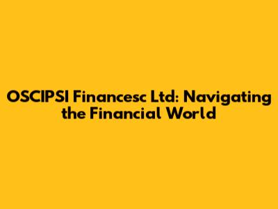OSCIPSI Financesc Ltd: Navigating The Financial World