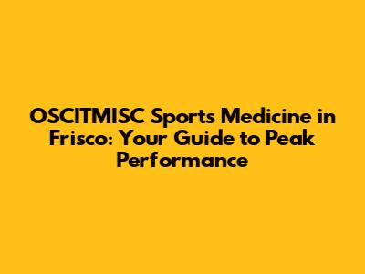 Hey guys! Are you an athlete in Frisco looking to up your game or recover from an injury? Then you've probably heard about OSCITMISC Sports Medicine. It's the place to be for athletes of all levels. Let's dive into what makes OSCITMISC a game-changer for sports medicine in Frisco, TX.