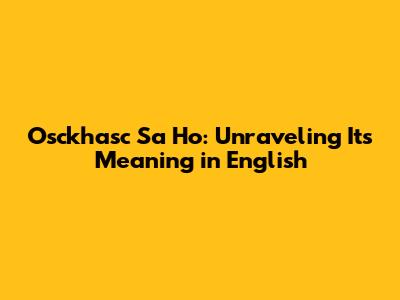 Osckhasc Sa Ho: Unraveling Its Meaning In English