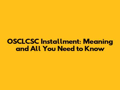 OSCLCSC Installment: Meaning And All You Need To Know