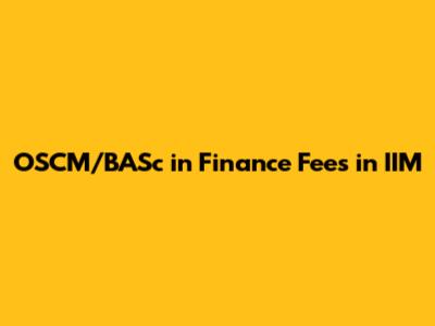 OSCM/BASc In Finance: Fees At IIMs