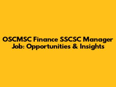 OSCMSC Finance SSCSC Manager Job: Opportunities & Insights