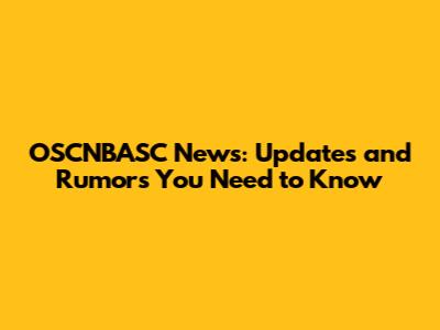 OSCNBASC News: Updates And Rumors You Need To Know
