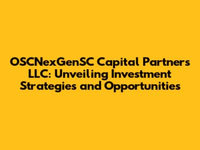 OSCNexGenSC Capital Partners LLC: Unveiling Investment Strategies and Opportunities
