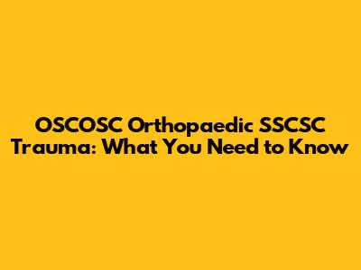 OSCOSC Orthopaedic SSCSC Trauma: What You Need To Know