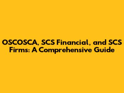 OSCOSCA, SCS Financial, And SCS Firms: A Comprehensive Guide