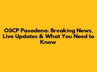 OSCP Pasadena: Breaking News, Live Updates & What You Need To Know