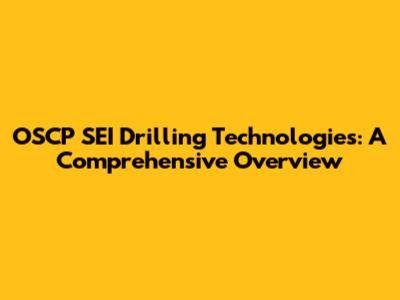 OSCP SEI Drilling Technologies: A Comprehensive Overview