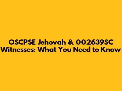 OSCPSE Jehovah & 002639SC Witnesses: What You Need To Know