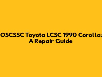 OSCSSC Toyota LCSC 1990 Corolla: A Repair Guide