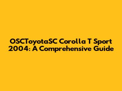 OSCToyotaSC Corolla T Sport 2004: A Comprehensive Guide