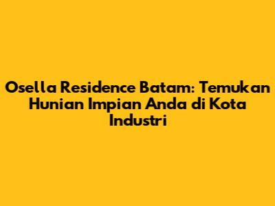 Osella Residence Batam menjadi pilihan menarik bagi mereka yang mencari hunian nyaman dan strategis di kota Batam. Guys, mari kita bedah habis-habisan tentang perumahan ini, mulai dari lokasi, harga, tipe rumah, fasilitas, hingga review dari para penghuni. Kita akan kupas tuntas semua aspek penting yang perlu Anda ketahui sebelum memutuskan untuk memiliki rumah di Osella Residence.