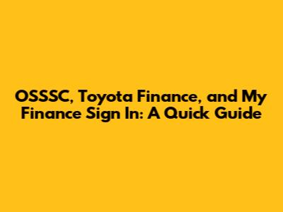 OSSSC, Toyota Finance, My Finance Sign In: A Quick Guide