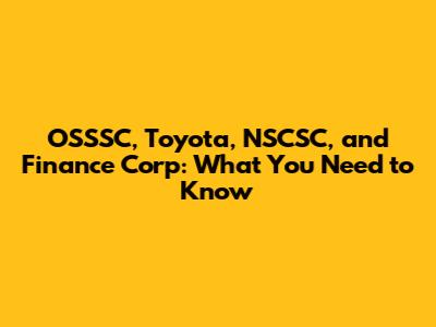 OSSSC, Toyota, NSCSC, And Finance Corp: What You Need To Know
