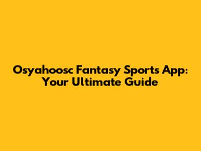 Osyahoosc Fantasy Sports App: Your Ultimate Guide