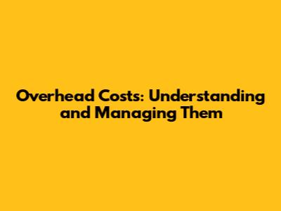 Overhead Costs: Understanding And Managing Them