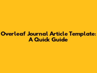 Overleaf Journal Article Template: A Quick Guide
