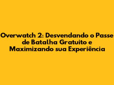 Com dedicação e as estratégias certas, você vai dominar o Passe de Batalha gratuito e se tornar um jogador de Overwatch 2 de respeito. Então, prepare-se para a ação, escolha seus heróis e caia de cabeça no mundo de Overwatch 2!