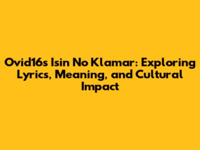 Ovid16's 'Isin No Klamar': Lyrics, Meaning, And More!