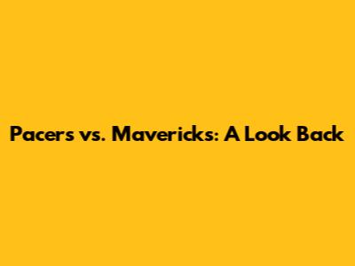 Pacers Vs. Mavericks: A Look Back