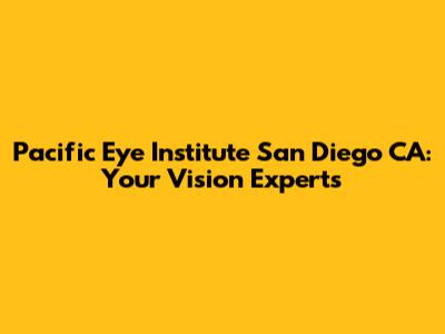 The Pacific Eye Institute in San Diego, CA, is a trusted provider of comprehensive eye care services. With their advanced technology, experienced staff, and commitment to excellence, they are dedicated to helping you achieve and maintain optimal vision. So, if you're in the San Diego area and looking for top-notch eye care, the Pacific Eye Institute is definitely worth considering! Remember to do your research, read reviews, and ask questions to make sure it's the right fit for you. Good luck, and here's to healthy eyes!