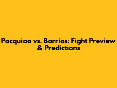Pacquiao Vs. Barrios: Fight Preview & Predictions