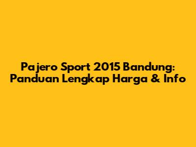 Pajero Sport 2015 Bandung: Harga & Panduan Lengkap