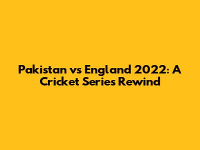 Pakistan Vs England 2022: A Cricket Series Rewind