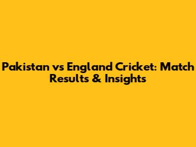 Pakistan Vs England Cricket: Match Results & Insights