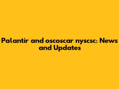 Palantir And Oscoscar Nyscsc: News And Updates