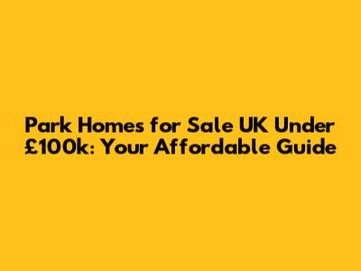 Park Homes For Sale UK Under £100k: Your Affordable Guide