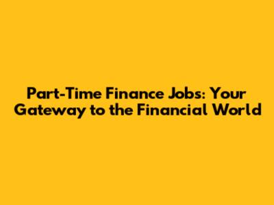 Part-Time Finance Jobs: Your Gateway To The Financial World