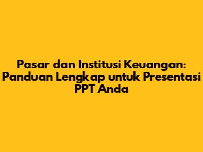 Untuk membuat PPT yang komprehensif tentang pasar dan lembaga keuangan, Anda perlu membahas komponen-komponen utama berikut: