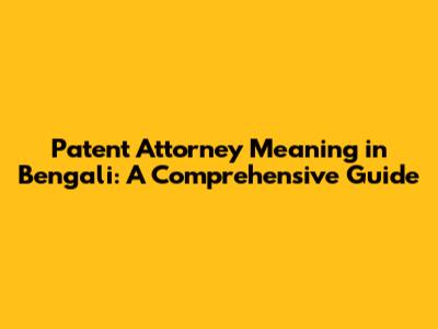 Patent Attorney Meaning In Bengali: A Comprehensive Guide