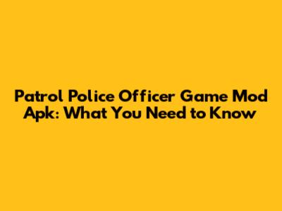 Patrol Police Officer Game Mod Apk: What You Need To Know