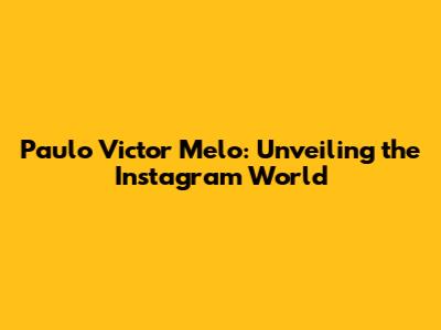 Hey everyone! Let's dive into the digital realm and explore the online presence of Paulo Victor Melo, especially his Instagram. It's like, super interesting to see how people use this platform, right? We're going to check out what makes his Instagram tick, how he uses it, and maybe even pick up some tips and tricks. Think of this as your friendly guide to understanding Paulo Victor Melo's Instagram game. We'll be looking at everything from his content to his strategies and how he interacts with his followers. Ready to get started, guys?