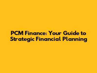 PCM Finance: Your Guide To Strategic Financial Planning