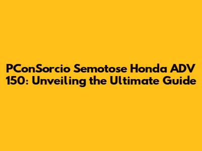 PConSorcio Semotose Honda ADV 150: Ultimate Guide