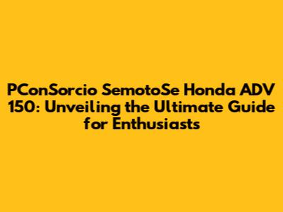 PConSorcio SemotoSe Honda ADV 150: Ultimate Guide
